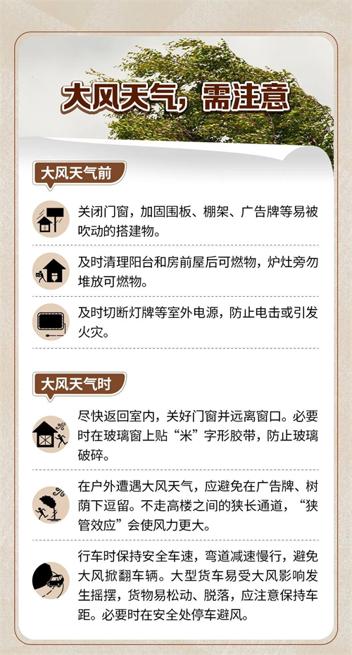 請(qǐng)相關(guān)部門提前做好短時(shí)暴雨、雷暴大風(fēng)和冰雹等強(qiáng)對(duì)流天氣的防御工作;公眾在發(fā)生雷雨大風(fēng)時(shí)減少戶外活動(dòng),遠(yuǎn)離棚架廣告牌等搭建物;注意短時(shí)暴雨引發(fā)的山洪、滑坡、泥石流等災(zāi)害。