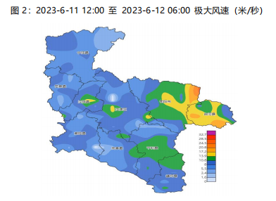2023年6月11日下午至夜間我市部分地區(qū)出現(xiàn)5~7級陣風(fēng)天氣。據(jù)統(tǒng)計,2023年6月11日12時至6月12日06時全市共有20個氣象監(jiān)測站極大風(fēng)力超過6級,全市最大風(fēng)速出現(xiàn)在旬陽仙河鎮(zhèn)氣象監(jiān)測站25.7m/s,1級(2023年6月11日16時43分)。