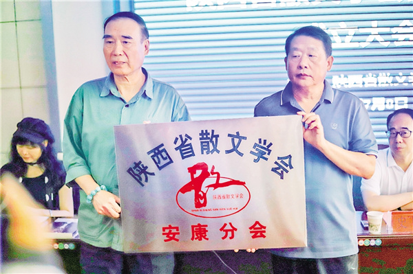 中國散文學(xué)會(huì)副會(huì)長(zhǎng)、陜西省散文學(xué)會(huì)會(huì)長(zhǎng)陳長(zhǎng)吟向省散文學(xué)會(huì)安康分會(huì)會(huì)長(zhǎng)李煥龍授牌。