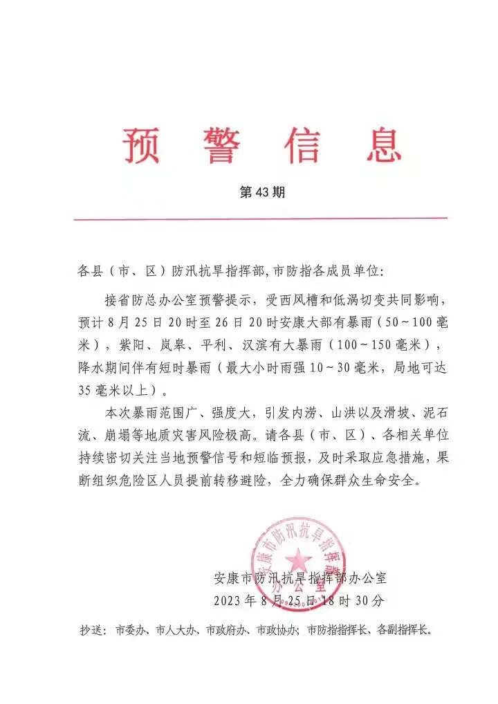 2023-08-25  來源:安康市防汛抗抗旱指揮部辦公室