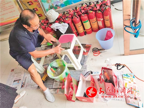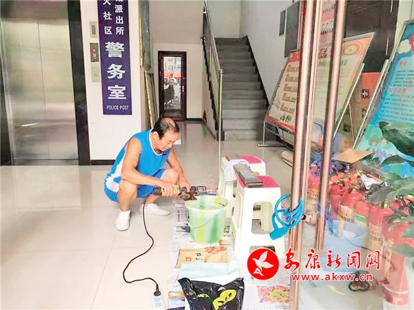 半年后,“老劉工作室”在社區(qū)內(nèi)已小有名氣。此時,御公館小區(qū)的新住戶馮福建認出了這位老熟人。“1991年,我還在老家富家河種田,劉成厚復員后被分到當時的八一水庫管理處養(yǎng)魚,他管理的魚塘和我家稻田一渠之隔。