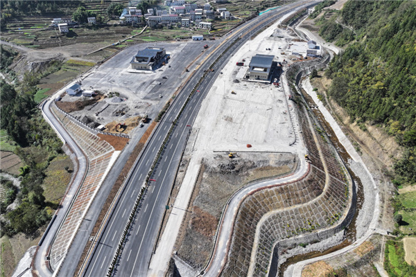 巫鎮(zhèn)高速公路中壩互通施工現(xiàn)場(11月1日攝,無人機照片)。新華社記者 邵瑞 攝