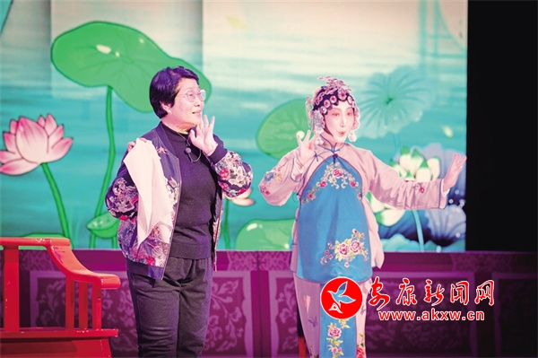 國家級(jí)傳承人王發(fā)蕓(左)老師指導(dǎo)學(xué)生演出QUg安康新聞網(wǎng)