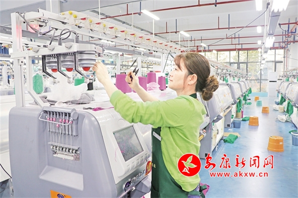 “我在這里做查片、補片。工作了大半年了,工資7000元左右。廠里每天還管三餐。”在家門口拿到比較滿意的工資,這是杜金瓊以前難以想象的好事。她曾在廣東務(wù)工近二十年,稱得上是紡織服裝行業(yè)資深從業(yè)者。得知西北紡織服裝產(chǎn)業(yè)城一期部分企業(yè)投產(chǎn)有大量用工需求,半年前,杜金瓊返鄉(xiāng)工作,并迅速成為廠里的技術(shù)骨干。“技術(shù)含量肯定是有的,但說難也不難,只要肯用心,練習(xí)實踐半年就能上手。”杜金瓊說。