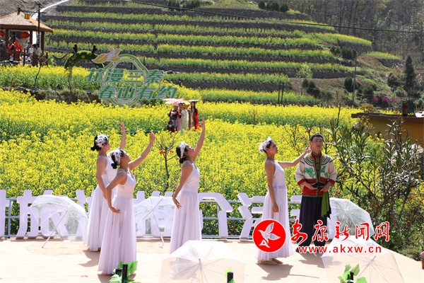 活動(dòng)以“花漫三秦 春山有約”為主題。在大道鑼鼓鏗鏘有力的鼓點(diǎn)中,活動(dòng)拉開序幕,配樂散文詩朗誦《詩意三秦之花語》、秦腔表演《五典坡——飄彩》、陜北民歌《牡丹花與放羊娃》、紫陽民歌《山之茶》、嵐皋武術(shù)表演等陜西各地獨(dú)具地方特色的文藝節(jié)目融入春的元素,展現(xiàn)出了陜西豐富的旅游資源和優(yōu)美春色。