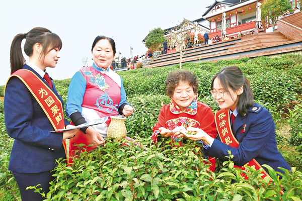 稅費(fèi)宣傳小分隊(duì)茶山宣講優(yōu)惠政策。 陳榮斌 攝