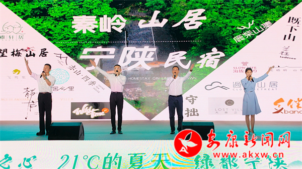 推介活動在開場舞“歡動秦嶺”中拉開序幕;顒蝇F(xiàn)場,寧陜縣相關(guān)負(fù)責(zé)人誠摯地邀請廣大市民到寧陜體驗(yàn)寧陜風(fēng)情、感悟秦嶺神韻,感受炎熱時節(jié)的清涼、享受喧鬧之外的寧靜。鹿柴山集、守拙園、雅軒居、朝陽山居四位民宿負(fù)責(zé)人做現(xiàn)場推介。寧陜縣還為廣大游客量身定制了自駕游、親水游、研學(xué)游三條精品旅游路線,現(xiàn)場情景推介讓觀眾如臨其境,感受“綠都寧陜”的獨(dú)特魅力。