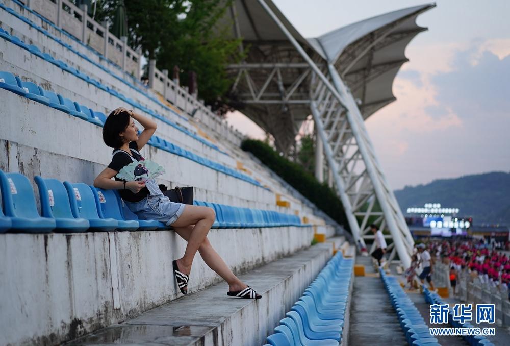 7月20日,一名市民在安康城區(qū)江南岸邊的看臺上休息。