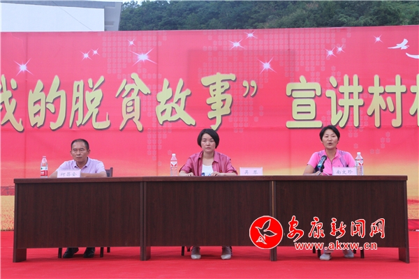 平利縣長安鎮(zhèn)黨委副書記、駐金沙河村工作隊隊長吳琴,講述了她帶領(lǐng)扶貧工作隊在金沙河村,通過道德評議樹“榜樣”治“懶病”的故事,她說:“思想的貧困是貧困的根源,提振志氣、增強信心,重塑對生活的希望是從根源消除貧困的必備良方。”白河縣倉上鎮(zhèn)裴家村致富能手柯昌全,講述了他自身是如何從“二混子”轉(zhuǎn)變成“自強標(biāo)兵”的歷程,他還勸誡鄉(xiāng)親們說:“貧困不可怕,只要有志氣、有信心,不等不靠,一定會擺脫貧困,過上幸福美滿的生活。”旬陽縣婦聯(lián)干部、駐城關(guān)鎮(zhèn)李家坪村第一書記南文珍用真切的話語,講述了自己三年來的駐村扶貧工作經(jīng)歷,用一個個感人的故事,體現(xiàn)了基層扶貧干部為脫貧攻堅付出的艱辛努力。