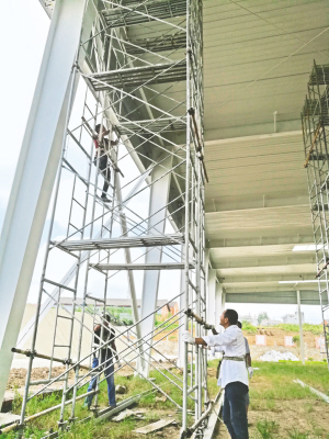 “現(xiàn)在你們看到的這兩個車間,地面已水泥硬化的車間是利用秸稈生產(chǎn)琉璃瓦的,對地基沒有太多要求;另外一個車間是生產(chǎn)輕質(zhì)隔墻板的,我們要做基礎(chǔ),對地基有要求,因為有重型設(shè)備,長、寬和高度都有要求。”苗小軍告訴記者。