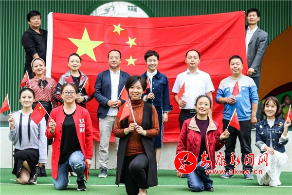 各班還分別設計了不同造型與國旗合影,表達對祖國母親的祝愿!