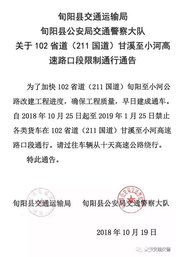 關(guān)于102省道(211國(guó)道)甘溪至小河高速路口段限制通行通告