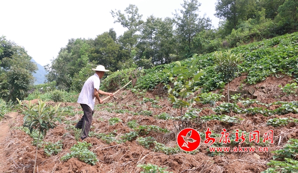 2017年,張本萬種植了3畝枇杷、1畝黃姜、3.5畝糧油,還喂養(yǎng)了一頭豬。流轉土地4.2畝到企業(yè)用于產(chǎn)業(yè)發(fā)展,企業(yè)每年付給他租金。除此之外,張本萬還承包了鄰居賈宗富的1畝8分地,種上玉米、紅薯等農(nóng)作物,一部分用來滿足自身生活需求,一部分用來喂養(yǎng)圈里未出欄的豬仔。