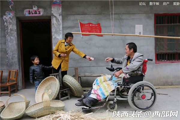 西部網(wǎng)訊(記者 魏永賢)安康旬陽縣紅軍鎮(zhèn)莊院村,是一個(gè)秦嶺大山里的小村莊,今年40歲的黃忠旺20年前在山西清水一鐵礦遭遇礦難后,就再也走不出這個(gè)小山村了。高位截癱坐在輪椅上的黃忠旺自學(xué)篾匠,靠編織日用竹制品,獨(dú)自一人將兒子從1歲供養(yǎng)到上大學(xué),成了當(dāng)?shù)氐牡赖履7稑?biāo)兵及脫貧攻堅(jiān)自強(qiáng)自立標(biāo)兵。