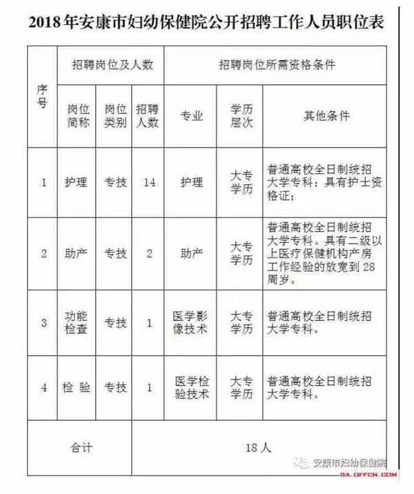 經(jīng)安康市衛(wèi)計局批準,安康市婦幼保健院院2018年擬公開招聘護理等專業(yè)技術人員,F(xiàn)將有關事項公告如下: