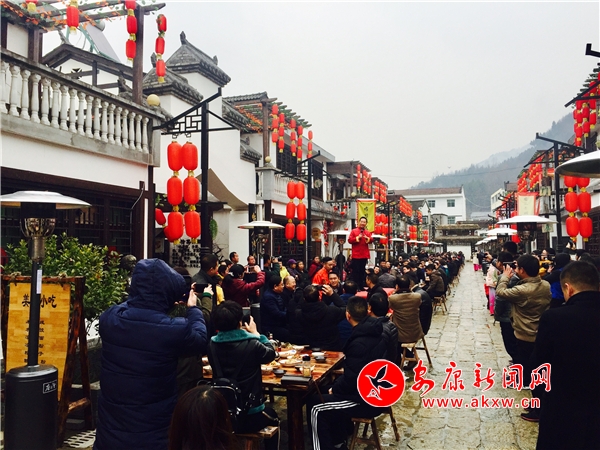 安康新聞網(wǎng)訊(記者張喬) 12月28日,石泉縣后柳鎮(zhèn)長街上,32桌庖湯宴開席,游客和當(dāng)?shù)厝艘黄鸩氯⒑染啤⒊匀,提前享受濃濃的年味。這只是2019年石泉庖湯會的預(yù)演,2019年1月12日(臘月初七)石泉第七屆漢水庖湯會將正式開吃。
