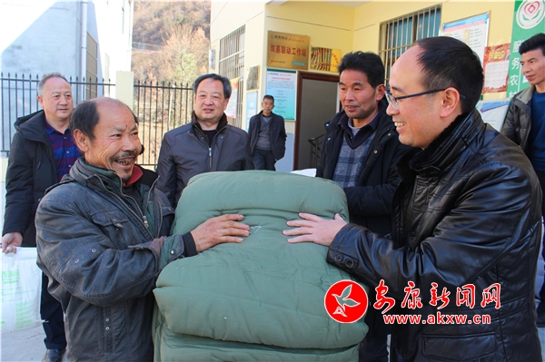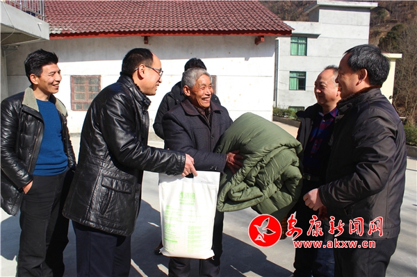 當(dāng)天中午,冬日的暖陽把山村照耀的格外溫暖,每到一戶,局領(lǐng)導(dǎo)都把精心準(zhǔn)備的米面油和棉被送到老人手里,并與他們親切交談,詳細(xì)了解他們的身體情況、生活情況和年貨準(zhǔn)備情況,提前向他們拜年送上祝福,現(xiàn)場(chǎng)不時(shí)響起爽朗的笑聲。在貧困戶黃必印家里,市稅務(wù)局的干部不僅給他們送去了過年所需的米面油,還給黃必印正在上初三的孫女黃玲捎去了2000元的助學(xué)款,讓她在下半學(xué)期能夠安心上學(xué)。