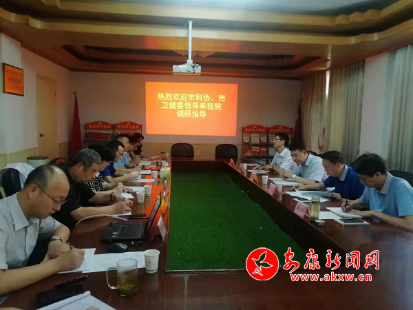 本網(wǎng)訊 為夯實全市醫(yī)學會及各分會發(fā)展協(xié)作工作,8月2日,安康市科協(xié)黨組書記、主席謝康,市科協(xié)黨組成員、秘書長葉榮斌、安康市衛(wèi)健委副主任楊彬、安康市保健辦主任陳少甫一行前往安康市中心醫(yī)院調(diào)研指導院士工作站、醫(yī)學會改選等工作開展情況,醫(yī)院黨委書記王曉春、黨委副書記、院長茹甫毅陪同調(diào)研。