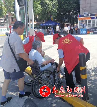 活動(dòng)中,志愿者們頭頂炎炎烈日,堅(jiān)守在十字路口的的八個(gè)拐角,身穿紅馬甲,手舉“為您文明行為點(diǎn)贊”標(biāo)識(shí)牌,對(duì)騎摩托車未帶頭盔、行人闖紅燈、不走斑馬線亂穿馬路等不文明行為主動(dòng)上前勸導(dǎo)制止。對(duì)通過路口行動(dòng)不便的老人、小孩、殘疾人等需要幫助的人群,主動(dòng)攙扶,扮演安全護(hù)駕使者,護(hù)送他們安全通過路口,善意舉動(dòng)贏得了過往車輛駕駛員的理解與讓行,更贏得了路過市民群眾頷首贊許。