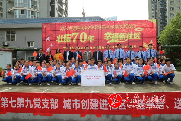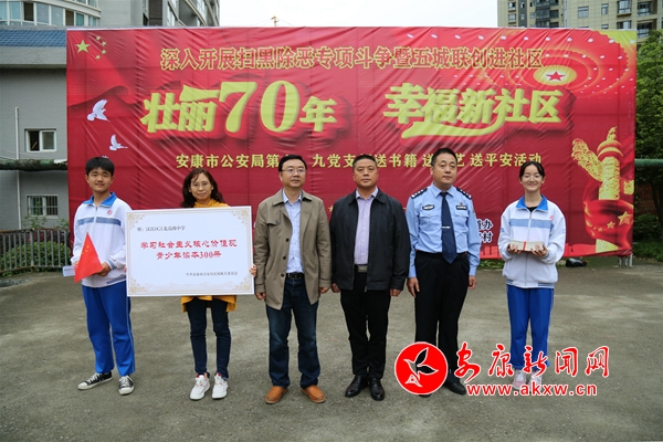本網(wǎng)訊 (通訊員 周瑞儒)壯麗70年,幸福新社區(qū)。在新中國成立70周年即將來臨之際,9月21日上午,市公安局機關(guān)第七、第九黨支部深入漢濱區(qū)江北辦事處中渡社區(qū),開展掃黑除惡專項斗爭暨“五城聯(lián)創(chuàng)”進(jìn)社區(qū)“送書籍、送文藝、送平安”活動。市公安局、市創(chuàng)建辦、安康日報社、江北街道辦事處相關(guān)負(fù)責(zé)人,市公安局機關(guān)第七、第九黨支部全體民警輔警,市公安局創(chuàng)建辦、漢濱分局江北派出所負(fù)責(zé)人,江北高級中學(xué)學(xué)生代表、社區(qū)群眾200余人參加活動。