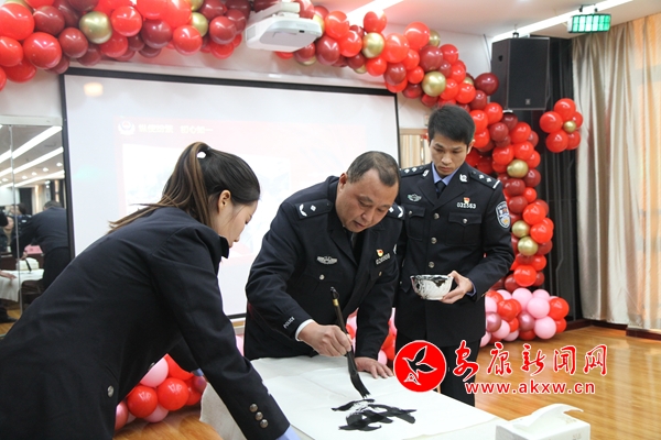 活動在雄壯有力的大合唱《人民警察之歌》中拉開序幕,詩朗誦《新年,你好!》,用詩行傳遞濃濃的節(jié)日祝福;女生小合唱《年輕的朋友來相會》,輕快的旋律,甜美的歌聲,瞬間把大家又拉回了那些青蔥歲月;崔銳利副局長一首《把根留住》獨(dú)唱,聲情并茂,把活動推向高潮;王鵬支隊長書法表演《納福迎新》,筆勢雄奇,姿態(tài)橫生,讓從警的初心從道路向筆尖延伸,即興吹奏《蘆笙戀歌》,蘆笙悠揚(yáng),宛如天籟,令人陶醉;舞蹈《舞有規(guī)行有矩》,將遵規(guī)守法融入舞蹈表演;獨(dú)唱《拉著中華媽媽的手》,婉聲悅耳,情真意切,祝愿祖國母親明天更美好;小合唱《走進(jìn)新時代》,老歌新唱,踏著新時代的東風(fēng)我們整裝再出發(fā);最后,活動在大合唱《我和我的祖國》中落下帷幕。