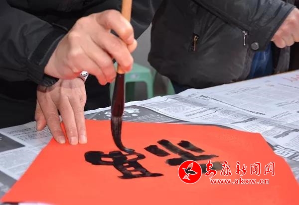 年味兒是義寫春聯(lián)送祝“福”
