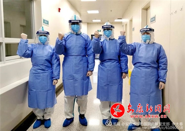 經(jīng)過戰(zhàn)前培訓(xùn),在余月菊護(hù)士長(zhǎng)的帶領(lǐng)下,1月30日,進(jìn)入隔離區(qū)后穿上厚厚的防護(hù)服、戴上護(hù)目鏡,給患者采集標(biāo)本、扎針治療,一站就是數(shù)個(gè)小時(shí)。雙層口罩讓呼吸不暢,護(hù)目鏡也隨著時(shí)間逐漸變得模糊,為了節(jié)省防護(hù)服,每一班人員至少值守4-5個(gè)小時(shí),期間不能吃飯、不能喝水、也不能上廁所。心理壓力大,只能自我調(diào)整,相互加油打氣防護(hù)服穿在身上冷熱交替,脫下后,臉上留下一道道的印子要很久才能下去,手也泡到發(fā)白起褶子,都只能一次次告訴自己堅(jiān)持再堅(jiān)持,患者還在等待治療,作為醫(yī)務(wù)人員一定不能先認(rèn)輸。在特殊的環(huán)境里靠著堅(jiān)定的信念,筑起一道道堅(jiān)固的心理防線,克服困難,克服恐懼,戰(zhàn)勝病毒!qG4安康新聞網(wǎng)