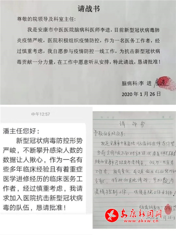 疫情發(fā)生以來,市中醫(yī)院黨委印發(fā)《關(guān)于加強(qiáng)黨的領(lǐng)導(dǎo)堅(jiān)決打贏疫情防控阻擊戰(zhàn)的通知》,廣泛動員各黨支部和黨員干部積極投身到疫情防控和集中救治第一線,亮身份、做表率、樹形象,在院黨委的號召下,兒科黨支部提出在疫情防控阻擊戰(zhàn)中開展“六帶頭”活動(帶頭沖鋒防控一線、帶頭學(xué)習(xí)防控知識、帶頭落實(shí)防控措施、帶頭嚴(yán)守工作紀(jì)律、帶頭做好思想工作、帶頭做好輿論引導(dǎo)),醫(yī)技第二、內(nèi)科第一、外科第一等黨支部的200余名黨員,1000余名職工積極參與到疫情防控工作當(dāng)中,一條條、一封封微言大義的請戰(zhàn)書,是中醫(yī)院醫(yī)務(wù)人員向疫情宣戰(zhàn)的決心,也是醫(yī)院全體職工抗擊疫情的忠誠與執(zhí)著。