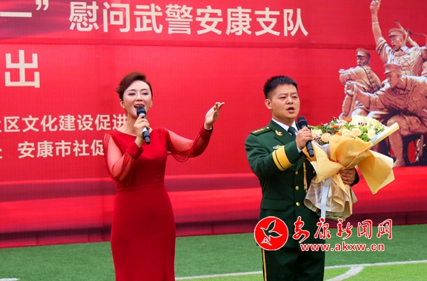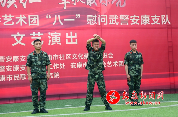 演出在《鼓悅安康》激昂的鼓點聲中拉開帷幕!秿{鄉(xiāng)情歌》一字一句把安康勞動人民的生產(chǎn)勞動、愛情生活、生活智慧表達的淋漓盡致;《為了誰》深情的謳歌了人民子弟兵的英勇無畏、堅強不屈的奉獻精神;《生命之舟》生動形象地演繹了人民子弟兵當洪魔肆虐時,駕駛沖鋒舟上演著“最美逆行”的驚心動魄;紅色故事《毛楚雄血灑東江口》,講述著發(fā)生在解放戰(zhàn)爭中安康寧陜可歌可泣的英雄事跡;《咱當兵的人》喚起了我們保家衛(wèi)國的凌云壯志……舞臺上,歌聲嘹亮,舞姿翩躚。舞臺下,歡笑連連,掌聲雷動,特別是由官兵們帶來的武術(shù)表演,動作連貫,招招精彩,讓在場觀眾看得熱血沸騰,一陣陣喝彩聲將演出推向了高潮。