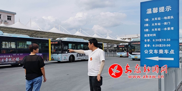 本網(wǎng)訊(通訊員 成忠旭)“你就在這等1路車,直達(dá)城東客運(yùn)站,不用再走到進(jìn)站路哪兒等車了。”8月11日,在安康火車站公交首末站,市公交公司一車隊(duì)副隊(duì)長(zhǎng)寇邦正告知乘客如何趕往目的地。