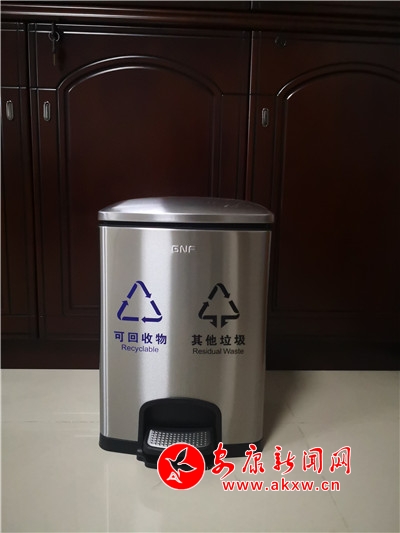 本網(wǎng)訊(通訊員 周明)近日,市機(jī)關(guān)事務(wù)服務(wù)中心按照四分類要求統(tǒng)一為市政府機(jī)關(guān)辦公區(qū)各樓層電梯間、樓梯間、茶水間、衛(wèi)生間等公共區(qū)域配置了分類垃圾桶,在院內(nèi)設(shè)置垃圾分類收集點(diǎn),全面推行生活垃圾分類工作。