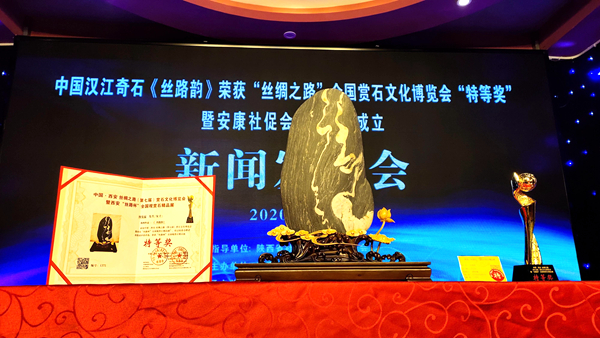 11月19日,安康市社區(qū)文化建設促進會舉行“漢江奇石《絲路韻》榮獲‘絲綢之路’全國賞石文化博覽會特等獎暨安康市社促會奇石協(xié)會成立大會”新聞發(fā)布會。市政協(xié)原副主席李啟良、黃秀玲到會祝賀。安康籍著名男高音歌唱家、聲樂教育家周發(fā)猛以及市級相關部門、新聞媒體和部分石友參加新聞發(fā)布會。