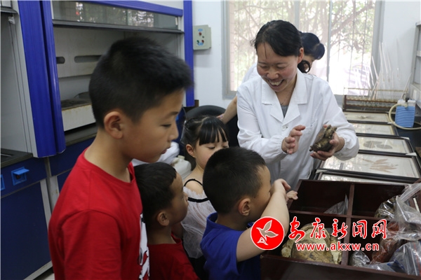 檢測中心的精密儀器室更是讓小朋友們大開眼界,這里的電子天平、高倍顯微鏡等許多檢測儀器引起了孩子們的濃厚興趣。實驗室的老師們通過采集培育門把手上的細菌,讓孩子們看到了細菌的形狀,告訴孩子們飯前便后要洗手。同時講述顯微鏡的使用方法,讓孩子們動手操作觀察藥材的組織構(gòu)造,從而對微觀世界有直觀認識,細心的小朋友還現(xiàn)場做起了筆記。