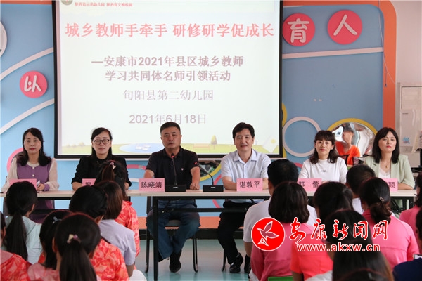 本網(wǎng)訊(通訊員 王國穎)為慶祝建黨100周年,貫徹黨史學(xué)習(xí)教育“學(xué)黨史悟思想辦實(shí)事開新局”的要求,加強(qiáng)城鄉(xiāng)教師之間的交流與溝通,促進(jìn)城鄉(xiāng)教育均衡發(fā)展。6月17、18日,市幼兒園黨支部在市教體局的指導(dǎo)下,帶領(lǐng)“城鄉(xiāng)教師學(xué)習(xí)共同體名師引領(lǐng)”培訓(xùn)團(tuán)隊(duì),到旬陽縣第二幼兒園開展以“城鄉(xiāng)教師手牽手 研修研學(xué)促成長”為主題的名師引領(lǐng)送教活動。市教體局教師工作科科長、旬陽縣師訓(xùn)教研中心領(lǐng)導(dǎo)蒞臨活動現(xiàn)場指導(dǎo)培訓(xùn),旬陽縣22所鄉(xiāng)村幼兒園165名幼兒教師參加培訓(xùn)。
