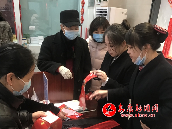 上午十點,儲蓄所門外張燈結彩,歌聲悠揚,一幅幅充滿希望、喜氣盈盈的謎語吸引了四面八方的儲戶。只見一位中年男子摘下“什么人生下來就稱王”的謎語笑盈盈地填上“姓王的人”謎底遞給現(xiàn)場的兌換點,只聽工作人員大聲宣布“恭喜中了一等獎”。