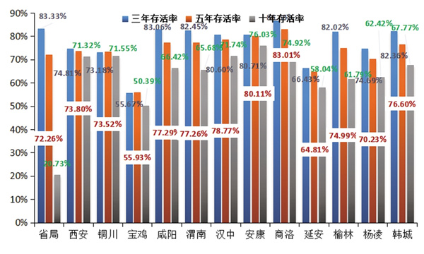 2011—2020年期間我省各市(區(qū))市場(chǎng)主體存活率情況