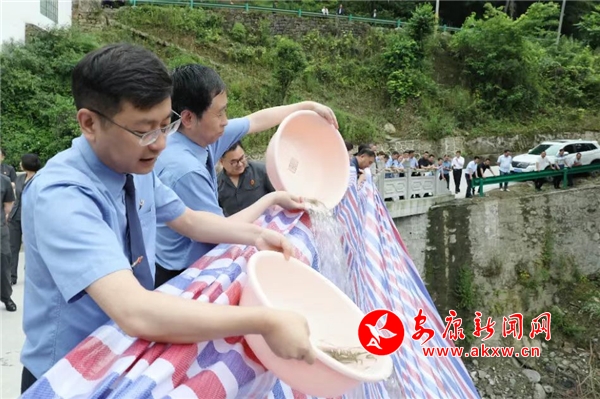 6月5日,在剛剛過去的第51個世界環(huán)境日,安康鐵檢院、安鐵法院、安康市農(nóng)業(yè)農(nóng)村局等單位在紫陽聯(lián)合開展增殖放流活動,用三名被告繳納的野生動物資源損失費購買錢魚魚苗10000余尾,投放在案發(fā)地水域,及時修復(fù)因犯罪行為而受損的任河國家級保護(hù)區(qū)的生態(tài)環(huán)境。GCc安康新聞網(wǎng)