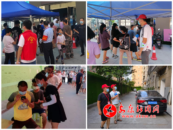 8月16日16時(shí),太陽(yáng)火辣辣地直射地面,安康市區(qū)街道酷熱難耐。在北門社區(qū)面粉廠家屬院第一輪核酸檢測(cè)采樣現(xiàn)場(chǎng),安康市公路局下沉的5名志愿服務(wù)隊(duì)員各司其職、各盡其責(zé),助力核酸檢測(cè)高效有序完成。