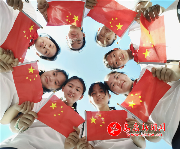 活動中,全體師生一道設(shè)計各種場景方式,用燦爛的笑臉與鮮艷的五星紅旗合影,同學(xué)們用特有的方式表達(dá)對祖國的崇高敬意,表達(dá)他們用青春報效祖國、一生與國旗同框的愛國情懷。