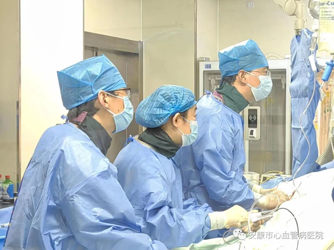 守正創(chuàng)新是引領醫(yī)院高質(zhì)量發(fā)展的動力和源泉。在院領導的重視和支持下,心血管內(nèi)科診療新技術不斷涌現(xiàn),形成了“院有重點、科有特色、人有專長”的良好格局。2022年安康市中心醫(yī)院心血管內(nèi)科共開展了11項新技術,包括雙腔無導線起搏器(AV)置入術、心腔內(nèi)超聲、caFFR應用于PCI治療、冠脈旋磨聯(lián)合沖擊波球囊碎石手術、ECOM支持下冠脈雙支重度鈣化旋磨介入治療、局麻下極簡式左心耳封堵術、左側(cè)髂內(nèi)巨大動脈瘤帶膜支架腔內(nèi)隔絕術及分支血管栓塞術、經(jīng)皮主動脈瓣介入換瓣手術(TAVR)、腸系膜動脈栓塞介入治療、Lacbes左心耳封堵器封堵術、獨立開展TAVR手術,填補了安康市心血管病診療的多項空白。其中,雙腔無導線起搏器在全省率先開展,獨立開展TAVR手術、冠脈旋磨聯(lián)合沖擊波球囊碎石手術更是躋身省內(nèi)領先水平。