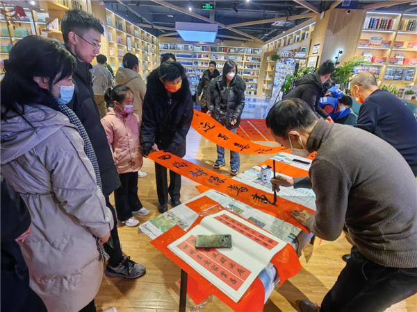 新華書店誠邀市文聯(lián)、市書法家協(xié)會的書法家現(xiàn)場揮毫潑墨,為現(xiàn)場讀者朋友們創(chuàng)作了200余幅寓意美好的春聯(lián),活動現(xiàn)場喜慶熱烈,大家有序領(lǐng)取稱心墨寶,喜笑顏開滿意而歸。