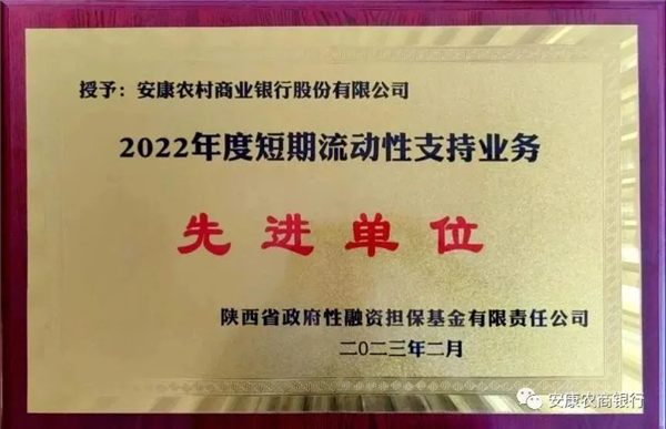 4月12日,安康農(nóng)商銀行喜獲2022年度短期流動性支持業(yè)務(wù)先進單位殊榮,安康農(nóng)商銀行黨委副書記、行長被授予2022年度短期流動性支持業(yè)務(wù)先進個人表彰。榮譽的取得不僅代表了安康農(nóng)商銀行在短期流動性支持業(yè)務(wù)開展及金融助力小微企業(yè)健康發(fā)展方面得到的充分認可,也標(biāo)志著安康農(nóng)商銀行在穩(wěn)健經(jīng)營、持續(xù)發(fā)展的道路上邁出的又一堅實步伐。