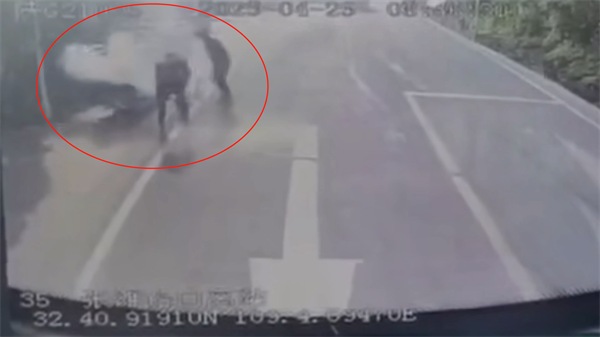 不一會兒,摩托車和駕駛員身上的火苗被撲滅,見到摩托車駕駛員沒有大礙,石金剛回到工作崗位,駕車離開。