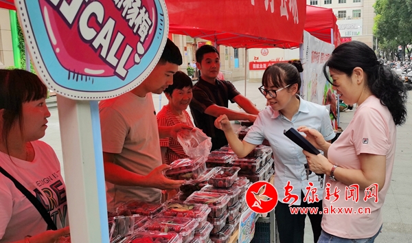 當(dāng)天下午,安康郵政渠道部、江南分公司聯(lián)合瀛湖鎮(zhèn)政府、雙堤社區(qū)、安康學(xué)院外語(yǔ)學(xué)院共同開展第二屆“迎七一”瀛湖楊梅宣傳周活動(dòng)在金州路郵政廣場(chǎng)如期舉行,12位瀛湖洞橋果農(nóng)帶著850斤楊梅來到活動(dòng)現(xiàn)場(chǎng),郵政為現(xiàn)場(chǎng)果農(nóng)精心準(zhǔn)備攤位及微郵付收款碼牌,通過市公司機(jī)關(guān)群宣傳、現(xiàn)場(chǎng)直播、短視頻對(duì)外宣傳、朋友圈點(diǎn)贊活動(dòng)、現(xiàn)場(chǎng)喊麥銷售、郵政職工朋友圈、好友群等多方面宣傳,兩個(gè)小時(shí)幫助果農(nóng)將楊梅銷售一空,廣獲好評(píng)。
