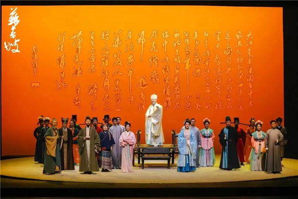 在排練《蘇東坡》的過(guò)程中解讀蘇詞、蘇文、蘇詩(shī),給了全劇組莫大的喜悅,快意一他大雅大俗的人格風(fēng)采讓我們不可遏制地喜歡他、敬愛(ài)他、崇拜他。愿觀眾在蘇東坡有喜有悲的人生,有聲有色的詩(shī)詞,有情有義的故事中了解那個(gè)說(shuō)不盡、說(shuō)不全、道不盡的蘇東坡。”