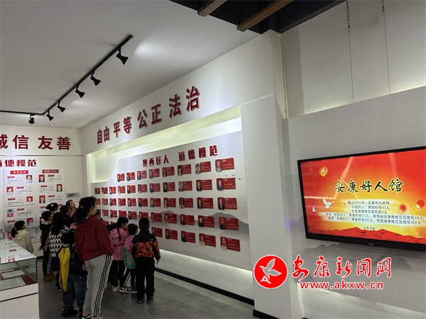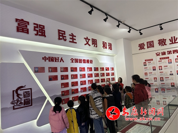 志愿者利用非遺互動(dòng)墻組織孩子們學(xué)習(xí)《紅軍老祖》的故事,通過(guò)文字、圖片以及志愿者的講解讓孩子們直觀了解英雄事跡,了解到“紅軍老祖”這種尊稱背后,寄托著人民群眾對(duì)紅軍真誠(chéng)、淳樸、久遠(yuǎn)的熱愛(ài)和懷念。隨后,志愿者帶孩子們參觀“安康好人館”,“安康好人館”分成前言板塊、全國(guó)道德模范及中國(guó)好人板塊、陜西道德模范及陜西好人板塊、安康道德模范板塊,培養(yǎng)和樹(shù)立孩子們“誠(chéng)實(shí)守信”“助人為樂(lè)”“孝老愛(ài)親”“敬業(yè)奉獻(xiàn)”“見(jiàn)義勇為”的文明意識(shí)。最后,志愿者將孩子們帶到書(shū)畫(huà)展廳,通過(guò)參觀、講解的方式,讓孩子們感受傳統(tǒng)文化的藝術(shù)魅力,希望孩子們學(xué)習(xí)藝術(shù)作品的構(gòu)圖、色彩搭配、線條等藝術(shù)手法并運(yùn)用到自己的學(xué)習(xí)當(dāng)中。