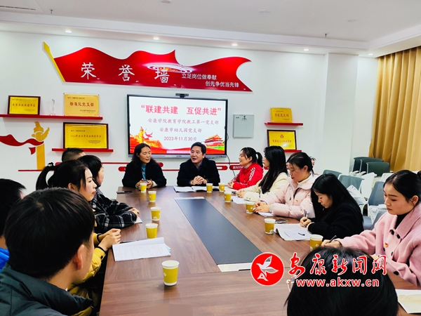 本網(wǎng)訊(通訊員 王國穎)11月30日,安康學(xué)院教育學(xué)院教工第一黨支部與安康市幼兒園黨支部聯(lián)合開展“聯(lián)建共建 互促共進(jìn)”主題黨日活動(dòng)。