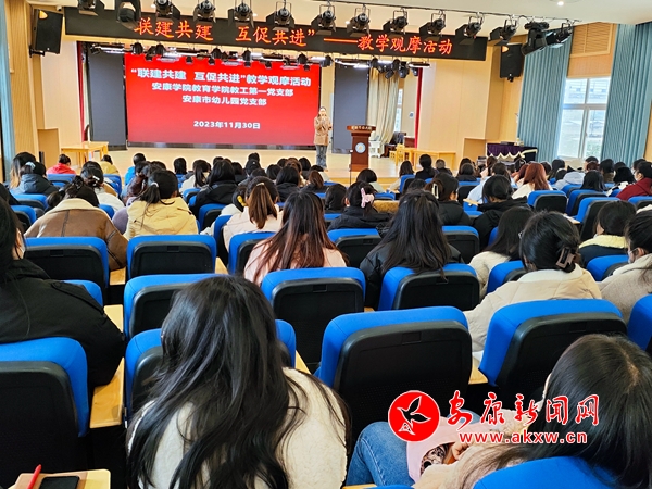 在開展教學(xué)觀摩研討交流活動(dòng)中,安康市幼兒園6名教師為安康學(xué)院學(xué)前教育系350余名學(xué)生,進(jìn)行了五大領(lǐng)域集體教學(xué)觀摩課展示。兩個(gè)黨支部20余名黨員教師,一起探討黨建品牌建設(shè)方面的工作思路,了解市幼兒園在學(xué)前教育理論指導(dǎo)方面的需求,并建立了黨支部共建教研交流群。