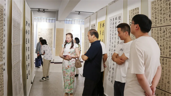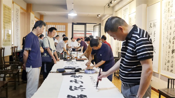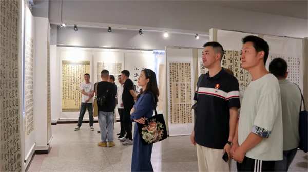 儀式結(jié)束后,全體與會人員共同前往書法展廳參觀,相互交流經(jīng)驗(yàn)、研討切磋,現(xiàn)場揮毫潑墨,為活動助力添彩。