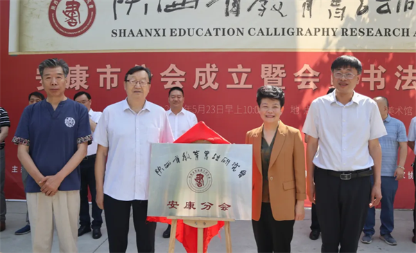 陜西省教育書法研究會名譽(yù)會長陳云龍、馬西平,安康市教育體育局黨委書記、局長屈曉紅,安康中學(xué)校長朱平共同為安康分會揭牌。
